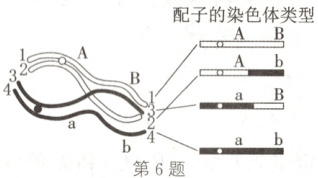 6.D 解析:图中染色体为同源染色体,发生了互换,属于基因重组,可能会使子代出现变异,A正确,D错误;互换发生在形成配子的过程中,即减数第一次分裂前期,B正确;互换发生在同源染色体的非姐妹染色单体之间,C正确。