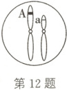 12.C 解析:若两条染色体为同源染色体,该动物基因型为Aa,正常情况下,同源染色体在减数第一次分裂前期联会,后期分离,分别进人不同的次级精母细胞。而图中一个次级精母细胞出现两条同源染色体,若因为基因突变,一般是一个基因突变为其等位基因,不会导致出现两条同源染色体且分别携带A和a基因的情况,A正确;若两条染色体为同源染色体,含a基因的染色体上某一片段发生缺失,可能导致原本含a基因的区域缺失,这样就会出现一条染色体含A基因,另一条染色体看起来没有相应等位基因的现象,B正确;同源染色体在减数分裂过程中会发生联会和染色体互换,但染色体互换不会导致一条染色体上全是A基因,另一条染色体上全是a基因,而是会导致基因的重新组合,C错误;若两条染色体为非同源染色体,含基因A的染色体上增加某一片段,有可能使原本不含A基因的非同源染色体上因为片段增加而出现类似图中含A基因的情况,D正确。