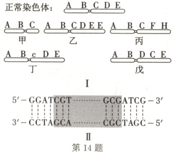 14. 如图Ⅰ所示为可遗传变异的几种类型,其中字母表示相关基因。请回答下列问题: