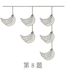 8. 核心素养 数学抽象 (2024·喀什期中)如图,某水果店门前用 3 根绳子挂了 6 串香蕉,从左往右的串数依次为 1,2,3.到了晚上,水果店老板要收摊了,假设每次只取 1 串(挂在一列的只能先收下面的),则将这些香蕉都取完的不同取法种数为