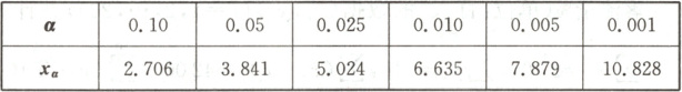 经计算,得$\chi^{2}\approx1.315$,临界值如下表: