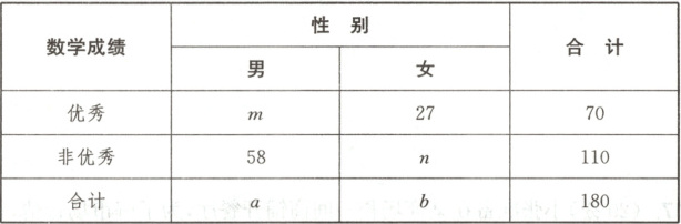 10. 为了探究某次数学测试中成绩达到优秀等级是否与性别存在关联,小华进行了深入的调查,并绘制了如下所示的$2×2$列联表(单位:人,个别数据暂用字母表示):