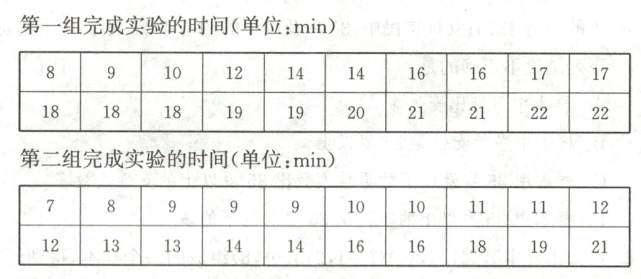 16. (18分)某校化学课题组为改进某项实验技术,减少实验时间,从而提高实验效率,从该校高二化学社团选取40名学生,并将他们平均分成两个实验组.第一组学生用原方法做实验,第二组学生用新方法做实验.现统计两组同学完成实验的时间(单位:min)如下: