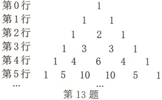 13. (2024·广东期末)“杨辉三角”最早出现在我国南宋著名数学家杨辉所著的《详解九章算法》中,是我国古代数学文化的瑰宝之一. 如图,由二项式系数构成的“杨辉三角”中,记第2行的第3个数为$a_{1}$,第3行的第3个数为$a_{2}$,$·s$,第$(n+1)$行的第3个数为$a_{n}$,则$a_{6}=$