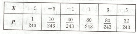 $(-3)×\frac{10}{243} + (-1)×\frac{40}{243} + 1×\frac{80}{243} + 3×\frac{80}{243} + 5×\frac{32}{243} = \frac{5}{3}$.