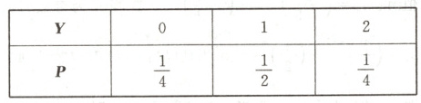 $E(Y)=0×\frac{1}{4}+1×\frac{1}{2}+2×\frac{1}{4}=1$。