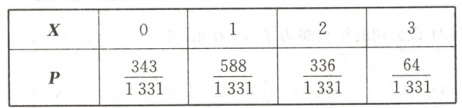所以$E(X)=3×\frac{4}{11}=\frac{12}{11}$。