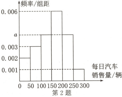 2. (2025·哈尔滨阶段练习)某汽车销售公司为了提升业绩,将最近一段时间内每日的汽车销售情况进行了统计,绘制成如图所示的频率分布直方图.