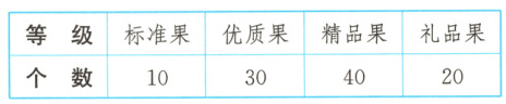 3. (2024·北京大兴期末)某种水果按照果径大小可分为四级:标准果、优质果、精品果、礼品果。某采购商从采购的一批水果中随机抽取$100$个,利用水果的等级分类标准得到的数据如下表: