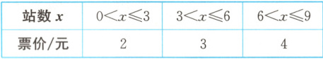 3. (多选题)(2024·东莞段考)某市地铁按照乘客乘坐的站数实施分段优惠政策,不超过 9 站的地铁票价如下表: