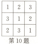 10. 将1,2,3填入$3 × 3$的方格中,要求每行、每列都没有重复数字. 如图所示为其中一种填法,则不同的填写方法共有 (