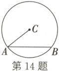 14. 教材改编 P24T24 如图,$ AB $ 是圆 $ C $ 的一条弦,则下列条件中,能得出 $ \overrightarrow{AC} · \overrightarrow{AB} = 2 $ 的是(