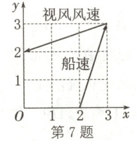 7.(2025·新课标Ⅰ卷)帆船比赛中,运动员可借助风力计测定风速的大小和方向,测出的结果在航海学中被称为视风风速,视风风速对应的向量是真风风速对应的向量与船行风速对应的向量之和,其中船行风速对应的向量与船速对应的向量大小相等,方向相反. 下表给出了部分风力等级、名称与风速大小的对应关系. 某帆船船运动员在某时刻测得的视风风速对应的向量与船速对应的向量如图所示(风速的大小和向量的大小相同,单位:m/s),则真风为 (