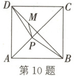 10.如图,在边长为$1$的正方形$ABCD$中,$P$是对角线$AC$上一点,且$\overrightarrow{AP} = \frac{2}{5}\overrightarrow{AC}$,则$\overrightarrow{DP} · \overrightarrow{BP} =$