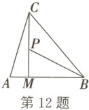 12.如图,在$\triangle ABC$中,$\overrightarrow{AB} = 4\overrightarrow{AM}$,$\overrightarrow{CP} = \frac{4}{7}\overrightarrow{CM}$,设$\overrightarrow{CA} = \boldsymbol{a}$,$\overrightarrow{CB} = \boldsymbol{b}$.