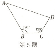 5. 如图,在四边形$ABCD$中,$\angle B = \angle C = 120^{\circ}$,$AB = 4$,$BC = CD = 2$,求该四边形的面积.