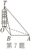 7.(2025·山东青岛二中期中)如图,记某塔的高为OT,测量小组选取与塔底O在同一水平面内的两个测量点A和B,现测得$\angle OBA=105^{\circ}$,$\angle OAB=45^{\circ}$,$AB=45$m,在点B处测得塔顶T的仰角为$30^{\circ}$,则塔高OT为 (