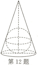 12. 如图,圆锥的底面半径为$r$,高为$3r$,且该圆锥内切球(球与圆锥的底面和侧面均相切)的半径为$1$,则$r$等于(