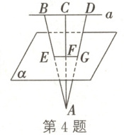 4. 如图,$a // \alpha$,$A$是$\alpha$另一侧的点,$B, C, D \in a$,线段$AB, AC, AD$分别交$\alpha$于点$E, F, G$.若$BD = 4, CF = 4, AF = 5$,则$EG =$