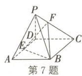 7. 如图,在四棱锥$P-ABCD$中,底面$ABCD$为平行四边形,$E$为$AD$的中点,$F$为$PC$上一点,当$PA //$平面$EBF$时,$\frac{PF}{FC}$的值为(