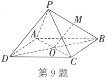 9. (多选题)如图,$P$为矩形$ABCD$所在平面外一点,矩形对角线的交点为$O$,$M$为$PB$的中点,则下列结论正确的是 (
