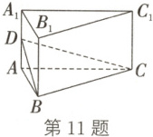 11. ▏探究开放题 如图,在直三棱柱$ABC-A_1B_1C_1$中,$D$为$AA_1$的中点,点$P$在侧面$BCC_1B_1$上运动,当点$P$满足条件