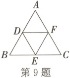 9. 如图,$D$,$E$,$F$分别是$\triangle ABC$的边$AB$,$BC$,$CA$的中点,则$\overrightarrow {AF}-\overrightarrow {DB}$等于(