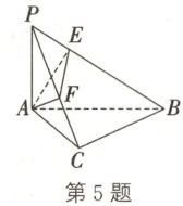 5. 如图,在三棱锥 $ P - ABC $ 中,$ PA \perp $ 平面 $ ABC $,$ \angle ACB = 90^{\circ} $,过点 $ A $ 分别作 $ AE \perp PB $,$ AF \perp PC $,$ E $,$ F $ 分别为垂足。求证: