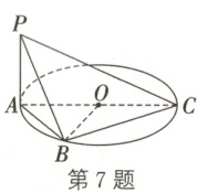 7. 如图,点 $ B $ 在以 $ AC $ 为直径的圆 $ O $ 的圆周上,$ \angle AOB = \frac{\pi}{3} $,$ PA \perp $ 平面 $ ABC $,$ 2PA = AC = 4 $,则二面角 $ P - BC - A $ 的平面角为 (