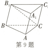 9. 如图,在斜三棱柱 $ ABC - A_1B_1C_1 $ 中,$ A_1B_1 \perp A_1C_1 $,$ B_1C \perp A_1C_1 $,则点 $ C $ 在平面 $ A_1B_1C_1 $ 上的射影点 $ H $ 必在 (