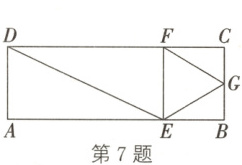 7. 如图,在矩形$ABCD$中,$AB=6$,$AD=2$,$G$为$BC$的中点,点$E$,$F$分别在线段$AB$,$CD$上运动,且$EF// AD$,沿$EF$将$\triangle GEF$折起,得到三棱锥$G-EFD$,当三棱锥$G-EFD$的体积最大时,直线$DG$与平面$DEF$所成角的余弦值为