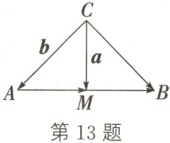 13. 如图,$\triangle ABC$是等腰直角三角形,$\angle ACB=90^{\circ }$,$M$是斜边$AB$的中点,$\overrightarrow {CM}=\boldsymbol{a}$,$\overrightarrow {CA}=\boldsymbol{b}$.求证:
