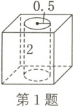 1. 如图,一个正方体的棱长为$ 2 $,以相对两个面的中心连线为轴,挖去一个直径为$ 1 $的圆柱形孔,则所得几何体的表面积为(