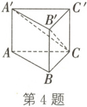 4. 如图,几何体$ ABC - A'B'C' $是体积为$ 2 $的棱柱,则四棱锥$ C - AA'B'B $的体积是(