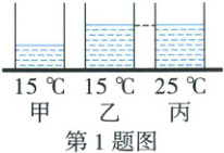 1. 甲、乙、丙三个等大的烧杯内装有水,三杯水的体积、温度的关系如图所示,
