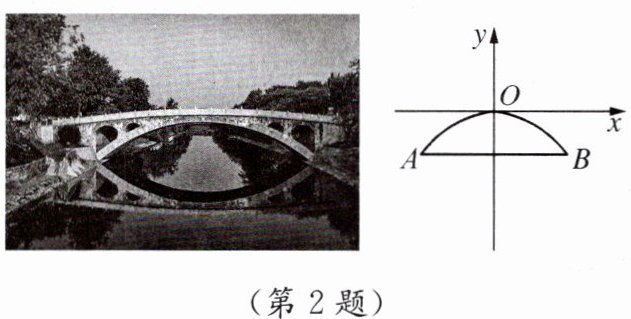 2. 河北省赵县的赵州桥的桥拱可近似看作抛物线形,建立如图所示的平面直角坐标系,其相应的函数表达式为$y = -\frac{1}{25}x^{2}$. 当水位线在 AB 位置时,水面宽 AB = 30 m,这时水面离桥顶的高度 h 是(
