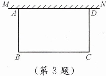 3. 如图,空地上有一堵墙,某人利用墙和木栏围成一个矩形菜园$ABCD$.已知矩形菜园的一边靠墙,另三边一共用了100 m木栏.设矩形的宽$AB$为$x$,写出矩形菜园$ABCD$的面积$S( m^2)$与$x( m)$之间的函数表达式.