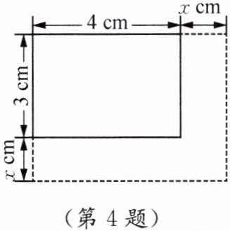 4. 如图,一个矩形的长为4 cm,宽为3 cm,如果将这个矩形的长与宽都增加$x$ cm,那么这个矩形的面积增加$y$ cm².