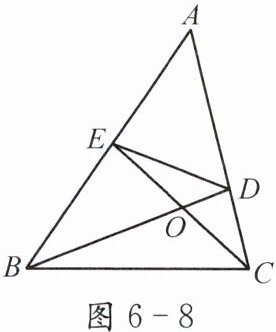如图6-8,在$\triangle ABC$中,点$D$、$E$分别在边$AC$和边$AB$上,$BD$、$CE$相交于点$O$,$AD:AE=AB:AC$.