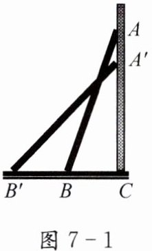 1.(1)如图 7-1,一架梯子斜靠在墙上,当它的顶端向下滑动时,它的底端将如何运动?滑动前$(AB)$与滑动后$(A'B')$的梯子,哪一个更陡些?