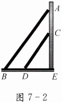 2. 如图 7-2,如果两架梯子$AB$、$CD$靠在墙上,且$AB // CD$,这两架梯子的倾斜程度相同吗?描述这两架梯子倾斜程度的量有什么关系?试着说说理由.