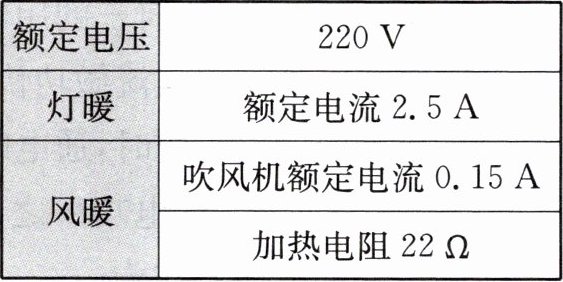 解:根据欧姆定律$I = \frac{U}{R}$,可得灯暖功能灯丝的电阻$R=\frac{U}{I_{灯暖}}$。