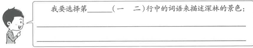 )2.这位同学欣赏着傍晚的阳光射入林中,又照亮青苔的场景,想到了诗人王维的一首诗,请你帮他写下来。要注意字距和标点符号哟!(4分)