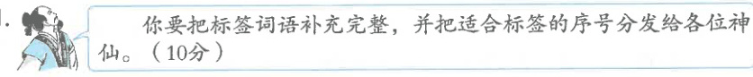 二、互动游戏。同学们只要完成“神话天团”的考题,就能跟他们合影啦,快来帮帮同学们吧!(14 分)