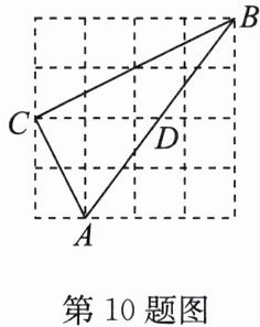 10. 如图,在 $ 4 × 4 $ 的网格中,每个小正方形的边长都为 1,点 $ A $,$ B $,$ C $ 均在格点上,$ D $ 是 $ AB $ 与网格线的交点,则 $ \sin \dfrac{∠ ADC}{2} $ 的值是