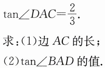 $\because \tan∠ DAC=\dfrac{CD}{AC}=\dfrac{2}{3}$,$\therefore CD = 2x$。