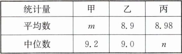 (3)解:推荐甲.理由:甲的中位数和平均数都比乙和丙的大,且甲的成绩稳定性比丙好,所以应该推荐甲.