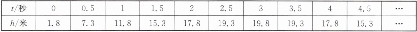 C.估计飞行时间t为5秒时,飞行高度h为11.8米