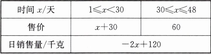 3. (2024·东海县一模)某商贸公司购进某种商品,经过市场调研,整理出这种商品在第$x(1≤ x≤ 48)$天的售价与日销售量的相关信息如下表: