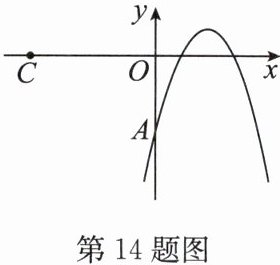 14. 如图,二次函数 $ y = - ( x - h ) ^ { 2 } + 1 $($ h $ 为常数)的图像与 $ y $ 轴交于点 $ A $.